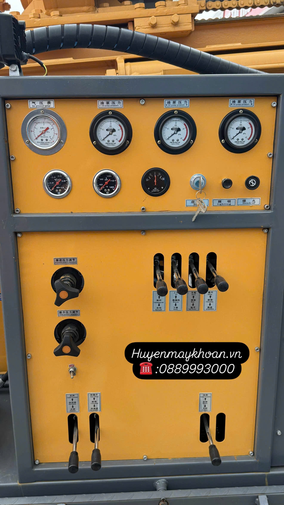- Máy khoan giếng FY200 là chiếc máy với thiết kế gọn, cơ động và có khả năng di chuyển dễ dàng trên nhiều địa hình nhờ hệ thống bánh xích chắc chắn. Bộ máy được trang bị động cơ Diesel công suất lớn (65kW) kết hợp với hệ thống khoan DTH sử dụng khí nén áp suất cao, giúp chúng ta xử lí được các loại địa chất khó và cứng như đá vôi hay bazan. Trang bị hệ thống thủy lực đây là hệ thống điều khiển toàn bộ thao tác nâng, xoay, tiến lùi cho máy một cách chính xác và linh hoạt giúp giảm chi phí vận hành cho doanh nghiệp sở hữu.